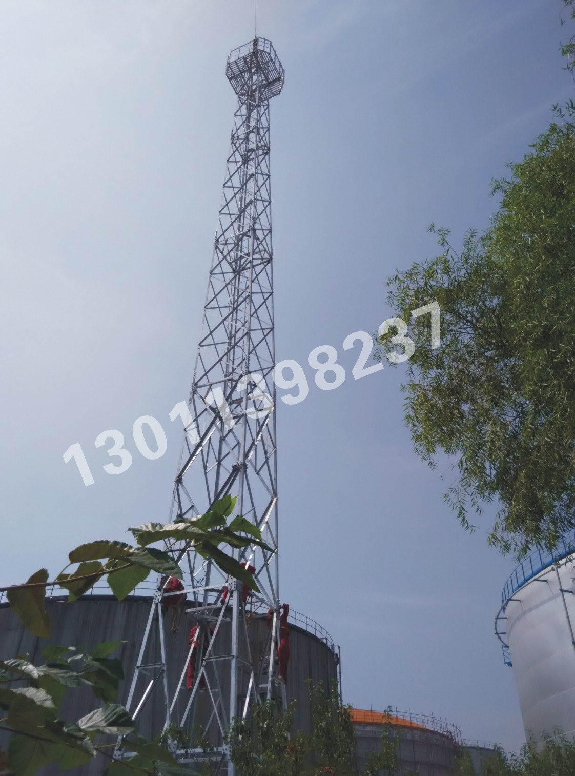烟囱铁塔为废气环境治理设备的重要组成部分,该塔由排放烟囱、塔架、爬梯、监测传感器等部分组成。塔架一般分为四柱角钢塔、四柱钢管塔、对于高度较高的塔型可选用六柱或者八柱钢管塔。烟囱设置在塔内采用抱箍固定或者螺栓连接固定。整套烟囱可分为自立式烟囱、塔架式烟囱、套筒式烟囱、集束式烟囱、不锈钢烟囱、玻璃钢烟囱、钢波纹板烟囱等。